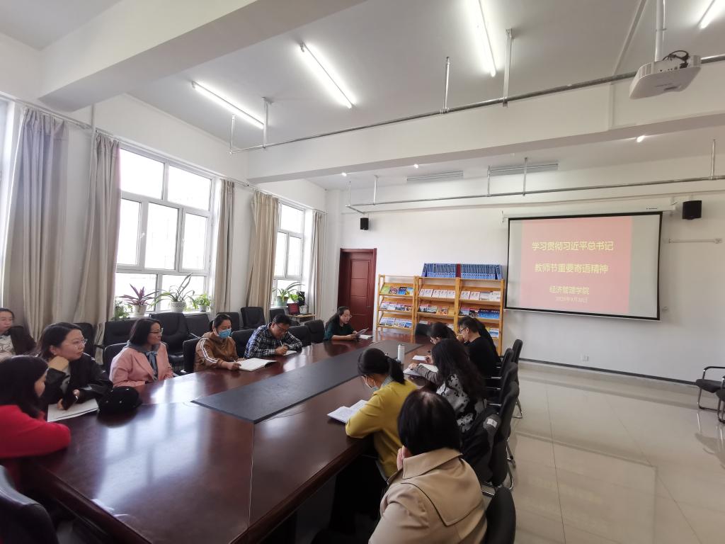 伟德国际victor1946于9月30日下午在崇文楼A座308会议室组织全体教职工深入学习习近平总书记教师节重要寄语精神,交流心得体会,本次学习由副书记李静主持。