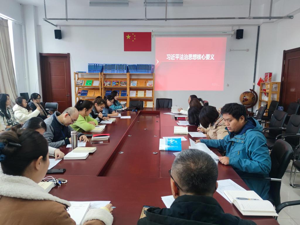 为推进主题教育走深走实,2023年11月1日下午,伟德国际victor1946全体教师党员在崇文楼A座308会议室开展专题讲座,讲座题目为《习近平法治思想核心要义》,主讲人为法学系教师赵婷。
