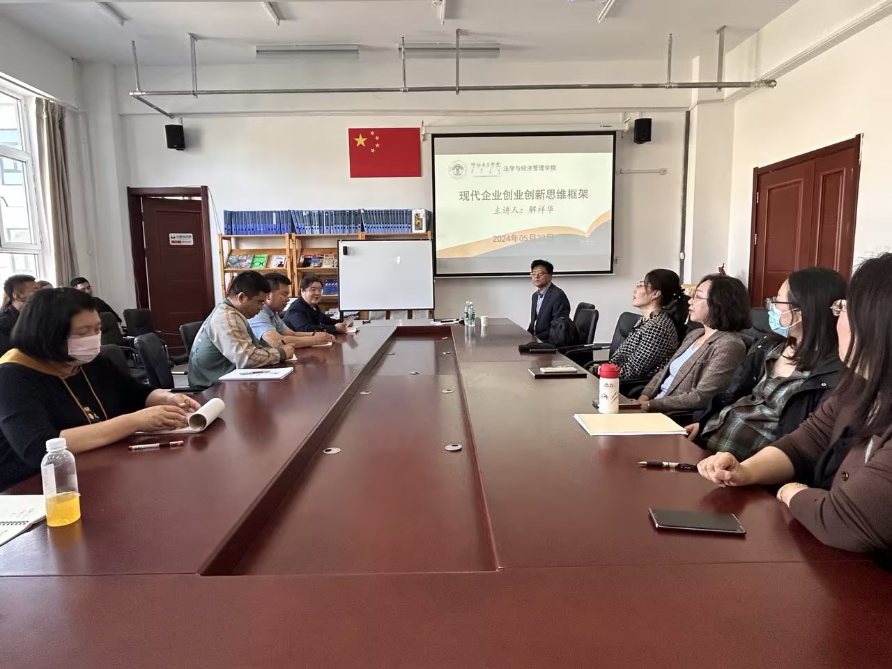 为进一步贯彻落实老员工创新创业教育工作,全面落实“将创新创业教育贯穿人才培养全过程”要求,搭建员工与专家的交流平台,5月24日下午,伟德国际victor1946特邀内蒙古财经大学解祥华教授,在崇文楼A308会议室举办专题讲座,公司党总支书记李静,经理刘启云,相关教师及员工参加讲座。
