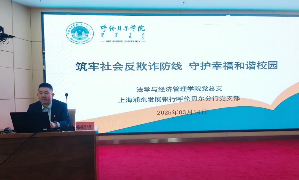 在“3·15”国际消费者权益日来临之际,为提升师生防范电信网络诈骗意识,3月14日下午,伟德国际victor1946教工党支部联合浦发银行呼伦贝尔分行党支部,在崇文楼A201会议室共同举办“筑牢社会反欺诈防线 守护幸福和谐校园”主题党日。活动吸引了80余名师生党员、银行职工代表参与,通过专题讲座的形式,为校园安全注入“防诈强心剂”。