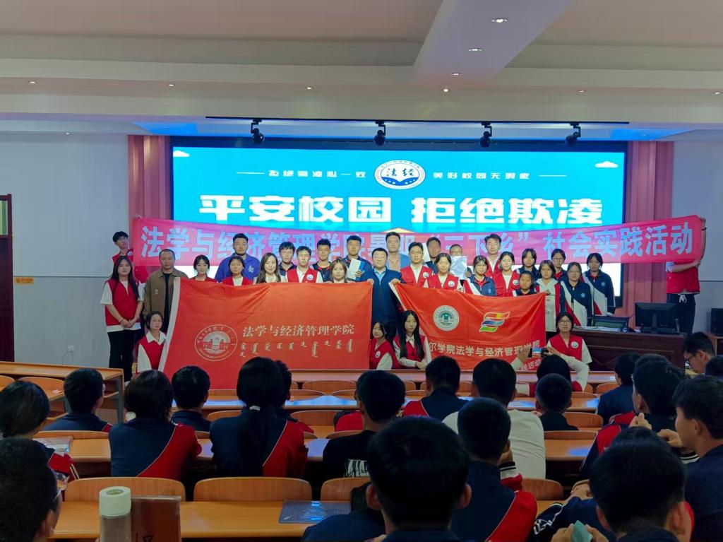 为深入贯彻法治教育从青少年抓起的理念,切实筑牢青少年法治意识与自我保护的思想防线,9月1日,伟德国际victor1946暑期“三下乡”实践团走进鄂温克中学,以“法治护航童成长,暖陪雏燕向蓝天”为主题开展志愿服务。