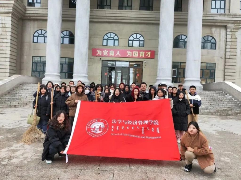 活动中,公司领导、党员教师奋斗在前,发挥党员的先锋模范带头作用;法经学子不畏困难、不畏严寒,出力流汗、磨炼意志,手拿各种工具,推、铲、扬、堆,各种方法齐上阵,齐心协力除冰扫雪,在劳动实践中相互配合,共同成长。经过近两个小时的奋战,终于为师生开辟出一条洋溢着暖暖温情的方便之路。员工们通红的脸颊、冻僵的双手,为初雪里的校园增添了一份别样的温暖。